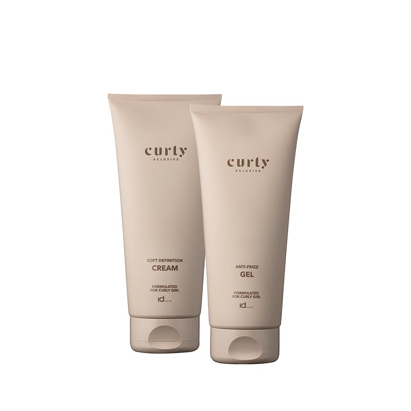 set Crema pentru definirea buclelor cu fixare lejera CURLY Xcls Soft Definition Cream + Gel anti electrizare pt par cret cu protectie termica si fixare puternica anti-umiditate CURLY Xcls anti-frizz curl gel 200ml